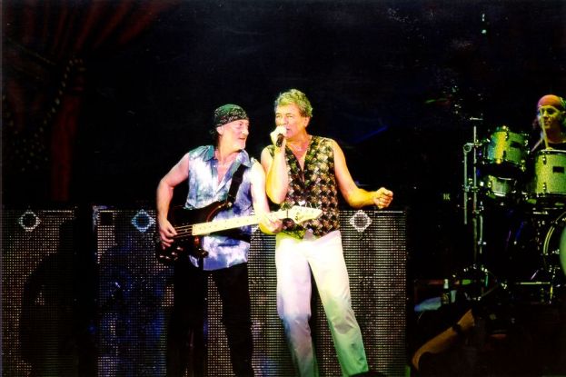 Всем читателям этих строк я искренне желаю остаться в такой же форме в их годы… Пожалуй, надо взять обратно слова о «дядьке» и «существе» из вышестоящих записок. «Существо», оказавшееся Гилланом, было босым, короткостриженым и вполне спортивного телосложения. Симпатичный басист в банданке – Роджером Гловером… ну, и далее по списку. Джон Лорд нависал над всеми коршуном с платформы, уставленной клавишными. Стив Морз (эх, Ритчи…), как и положено новичку, играл длинноволосого скромнягу. Йена Пэйса с моего места видно было плохо, но слышно очень хорошо, так что будьте уверены – он там тоже был.