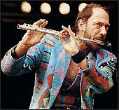 JT. Более чем обеспеченный человек (собственное рыболоведческое хозяйство), мистер Андерсон сегодня в состоянии позволить себе выступать где и когда захочется лично ему, не особенно заботясь о зарплате. В Израиле, например, они играли в небольшом зале человек на 500, а вслед за этим – чуть ли не на Уэмбли, и это нормальная практика. Их поклонники, как правило, неэкзальтированные личности, музыкально довольно подкованные, и это понятно - чтобы вникать в до сих пор довольно психоделичную музыку JT, недостаточно пары-другой глубоких затяжек. В сознании масс JT ассоциируются с легкой архаикой британского фолка, круто замешанного на британском же блюзе 60-х, виртуозной флейте маэстро, его же скрипучим голосом и несколькими незабываемыми риффами, уже несколько десятилетий кочующими из концертов в альбомы. И хорошо, ибо, как сказано Самим – "поклонники не хотят от своих любимых групп ничего нового". Спорно, но применительно к работе JT последних 30 с лишнем лет, довольно убедительно: за исключением неизбежных студийных трюков, появившихся за это время, их музыка практически не претерпела никаких изменений. Критики, как правило, к JT довольно благосклонны по той же причине – никто давно уже не ждет от них новых Aqualung или Minstrel In The Gallery. Тем приятнее маленькие радости, полученные поклонниками от весьма качественных в творческом отношении недавних альбомов Roots To Branches и Dot Com. Особой внутренней дрожи эти диски у меня не вызвали, но были прослушаны несколько раз безо всякого напряжения, и парочка риффов и мелодий до сих пор крутятся в голове. И главное – старина Андерсон по-прежнему глубоко уважаем во всем, что он делает (особенно когда удается забыть его вопиюще провальный сольник Into The Light – единственный серьезный облом в 35-летней карьере), даже когда просто играет на флейте в сопровождении оркестра, что вообще-то, в контексте вскормившего его рок-н-ролла 60-х, довольно нудно...Знающие люди, не раз выдевшие группу на концертах, заранее предупредили меня, что звук