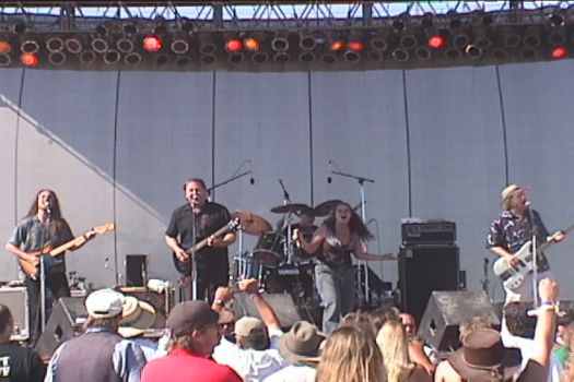 Canned Heat. Одна из самых психоделичных, скандальных и обкуренных американских блюз-рок групп, герои Вудстока, подсевшие на Джонни Ли Хукере и прочих черных блюзменах. Когда-то я был ошеломлен их зловещей Evil Woman, на фоне которой их основные хиты Going Up The Country и On The Road Again звучали утренними распевками. В нынешней инкарнации из былых монстров остался только сохранивший неплохую форму ударник Адольфо Де Ла Парра, непонятным образом сумевший избежать грустной участи своих собратьев по первому созыву... Играют они, видно, сейчас в крутой супер-группе в лучшем мире, а нам остаются ошметки былого величия, за что тоже, впрочем, спасибо. Понятно, что психоделично-блюзовый саунд означенные ошметки и поныне берегут и лелеют, хотя, сегодня, когда в мозги плотно вбиты легионы черно-белых блюзменов всех мастей последних трех десятилетий, это, признаться, мало интересно. Наверное, поэтому большую часть сэта Canned Heat я, сморенный солнцепеком, попросту продремал, и встряхнулся только когда мой милый Миро вспомнил о содержимом нашего драгоценного саквояжа...