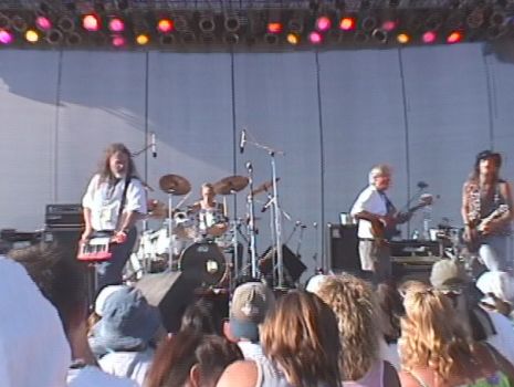Когда ведущий выкрикнул IRON!!! BUTTERFLY!!! в прокаленном воздухе Юты поплыл напряженный, натянутый звуковой поток огромной интенсивности. Не веря, что своими ушами слышу тех, кто вдохновили когда-то Deep Purple, Led Zeppelin и еще с пару сотен хард-динозавров 60-х годов, я принялся разглядывать их в видоискатель камеры. Из буклета непонятно было, кто из них имел отношение к оригиналам, но ситуация прояснилась довольно скоро - барабанщик и басист, Рон Буши и Ли Дорманн, были "настоящими", гитарист, хоть и походил голосом на Дага Ингла, по виду годился им всем в сыновья, но играл исключительно лихо и стильно, а за клавишными прыгал бородатый и патлатый мужик, которого мы уже видели в компании Quicksilver часа два назад, но здесь он явно чувствовал себя гораздо более комфортно, особенно когда менял "Хаммонд" на компактный киборд, позволяющий носиться по сцене.